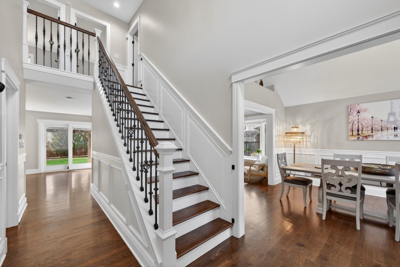 Tucked away in a peaceful cul-de-sac of the established Walker's Grove neighborhood, this home carries a true sense of warmth, timeless beauty, and quiet comfort. From the moment you walk in, a beautiful two-story foyer highlighted by elegant iron spindles and a formal dining room with cathedral ceilings sets the tone for the rest of the home. Flawless solid oak floors lead you into an elegant gourmet kitchen that truly stands out, featuring granite countertops, beautiful cabinetry, new stainless steel appliances, and an island with seating. The space opens into an expansive family room flooded with natural light, where a beautiful fireplace creates an inviting atmosphere for gathering and relaxation. Upstairs, the primary suite offers a soaking tub, separate shower, and a large walk-in closet. Three additional bedrooms are generously sized, with a full hallway bathroom completing the second level. Major mechanical updates have been completed, including HVAC and a radon mitigation system. Windows, doors, and roof have been replaced within the last three years. A security system with cameras is included. The three-car garage is heated and features an audio system. Outdoor living adds another layer to this home. A pergola, high-end jacuzzi installed in 2024, and a majority of the fence replaced within the last three years create a comfortable outdoor setting. Once the trees turn lush and green, the backyard becomes your own private retreat, set away from the pace of a fast-growing Plainfield. Don't miss the opportunity to own this well-kept solid beauty, located just minutes from downtown, Settlers' Park and highly acclaimed Plainfield North schools.