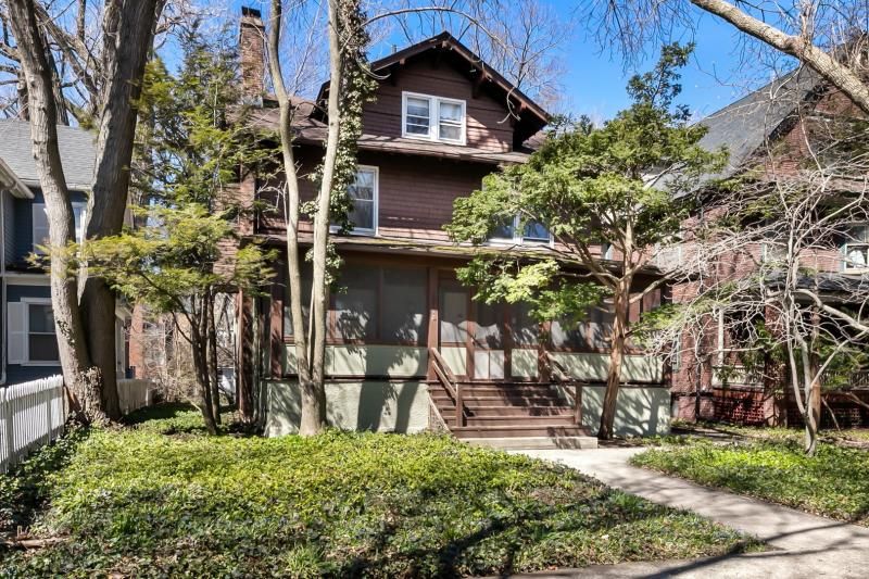 Rare opportunity to own a vintage home in highly desirable, NE Evanston. Perfect for live-in owner or investor. This historic home has been approved by the City of Evanston for an Accessory Dwelling Unit (ADU). The current monthly rental income is $8,120 and projected total of $9,500 per month for the upcoming year. Premier A+ location on a coveted street next to NU. This expansive home includes 6 large bedrooms, 1 with it's own private balcony, 3 of which have their own vanity sink, 2 full baths plus a powder room, sits on a huge oversized lot with a 3 car garage plus additional parking pad. Hardwood floors throughout, first floor features a charming screened-in front porch, a large living room with wood burning fireplace, a spacious dining room, a private study, and an eat-in kitchen with butlers pantry. New carpeting on third floor, plus screened-in back porch. Large basement allowing for ample storage area and laundry. Steps to downtown Evanston, both train lines, parks, several beaches and Northwestern University. To be conveyed as is condition.