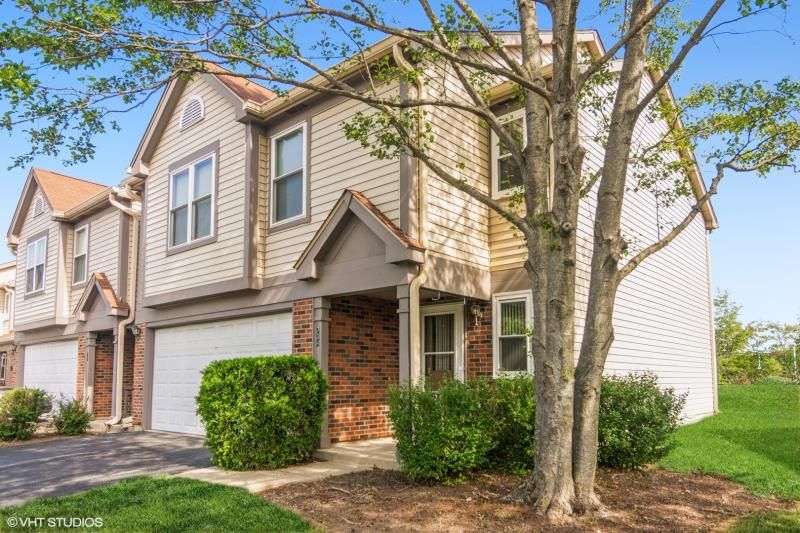 Incredible end unit townhome in sought after Whispering Oaks. Spacious 3 bedroom and 2.5 Baths with 2 car attached garage. Dramatic soaring two story living room high ceilings in the living room with fireplace and skylights, and southern exposure offers tons of natural bright light! Eat-in kitchen with a slider patio. Private master bath, hall bath, and convenient upstairs laundry with washer/dryer await you on second floor. Lovely patio on south side of home and backing to park offers privacy and plenty of sunshine. This beautiful townhome is conveniently located near schools, shopping, train, Falcon Park Recreation Center, and quick access to both Rand Road & Route 53.